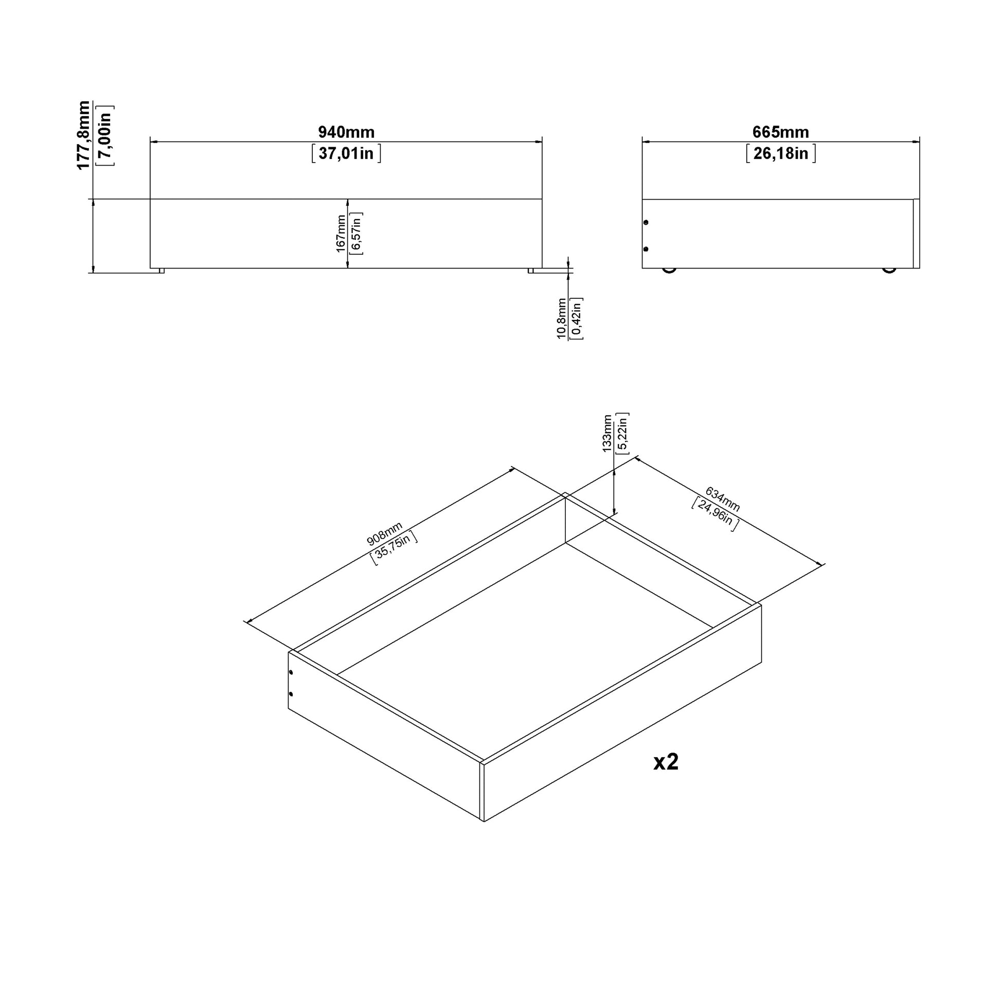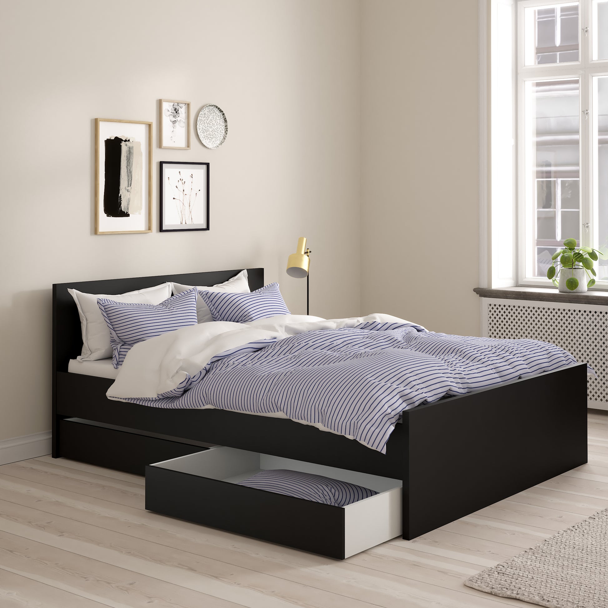 Naia Set of 2 Underbed Drawers (for Single or Double Beds) in Black Matt