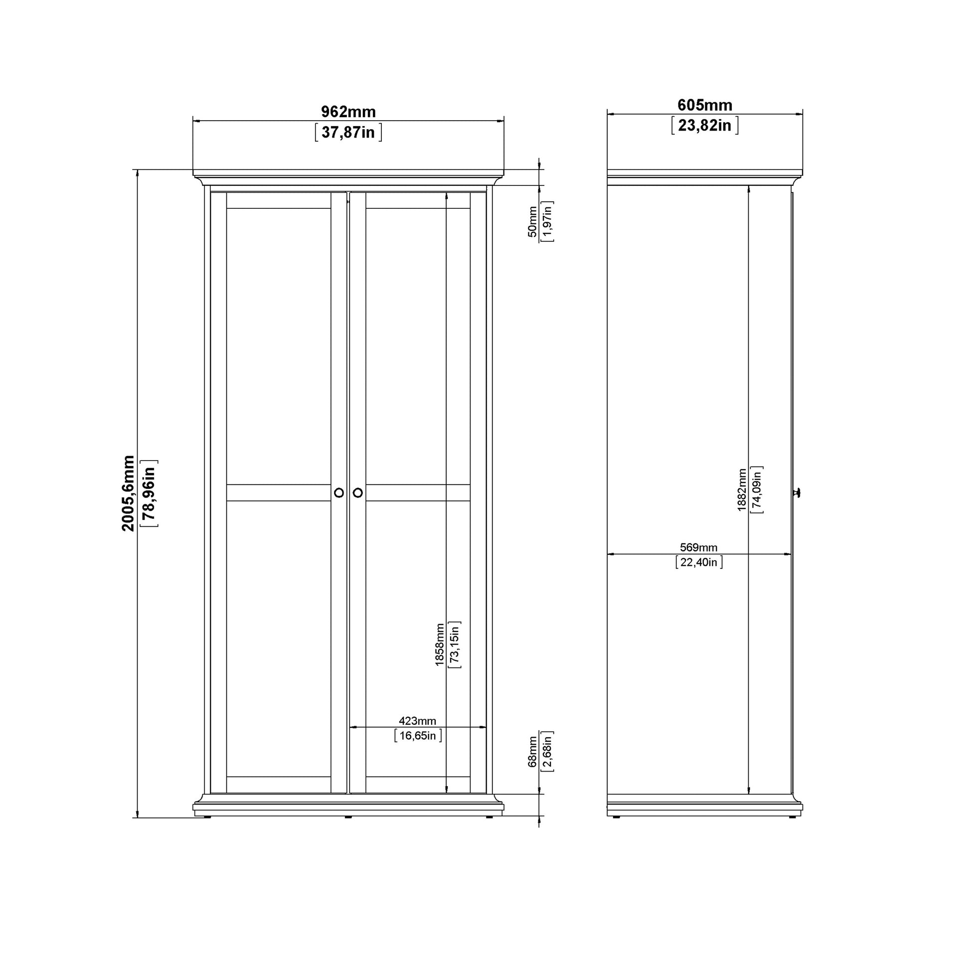 Paris Package - Bedside 2 Drawers + Chest of 4 Drawers + Wardrobe with 2 Doors Matt Grey
