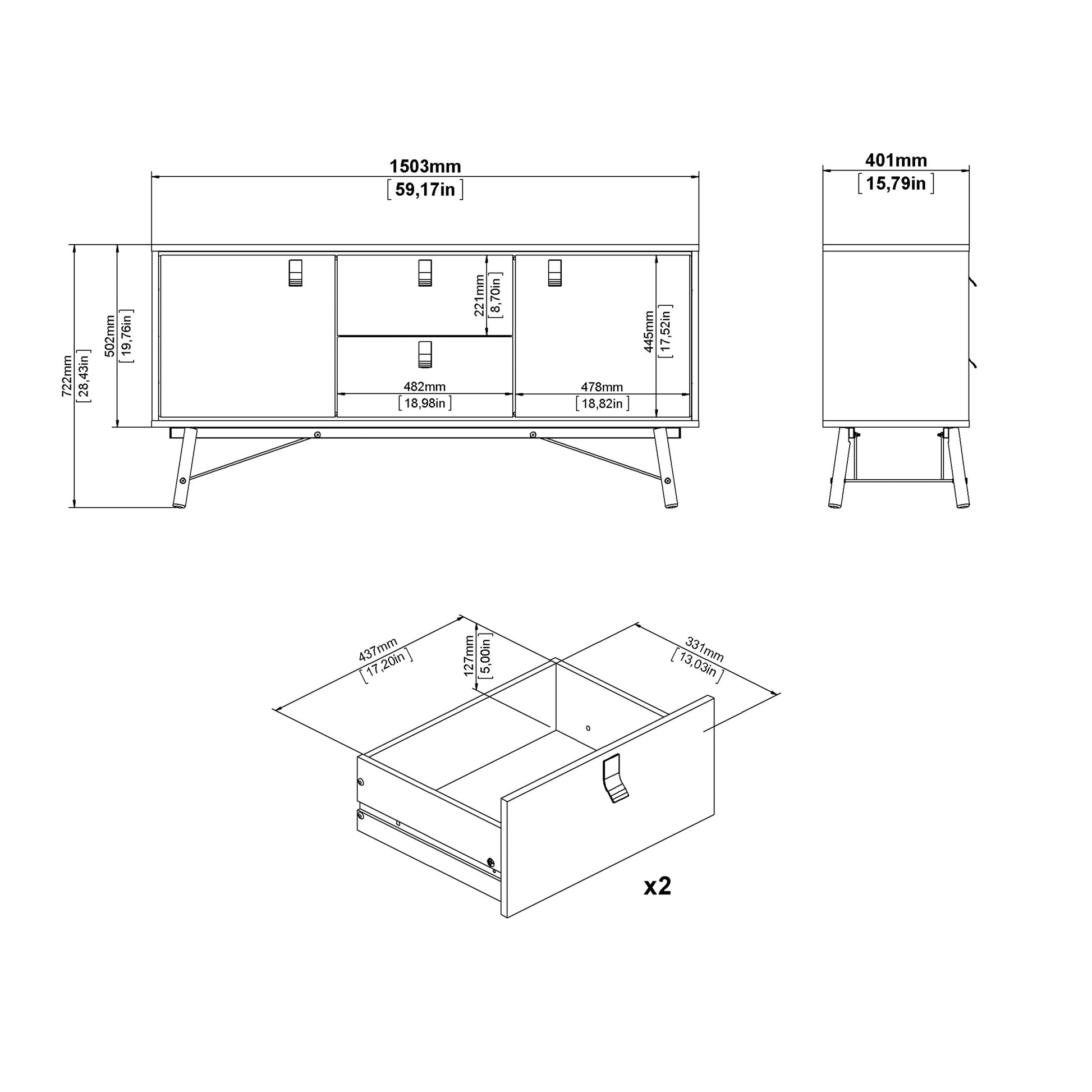 Ry Sideboard 2 Doors 2 Drawers in Matt White