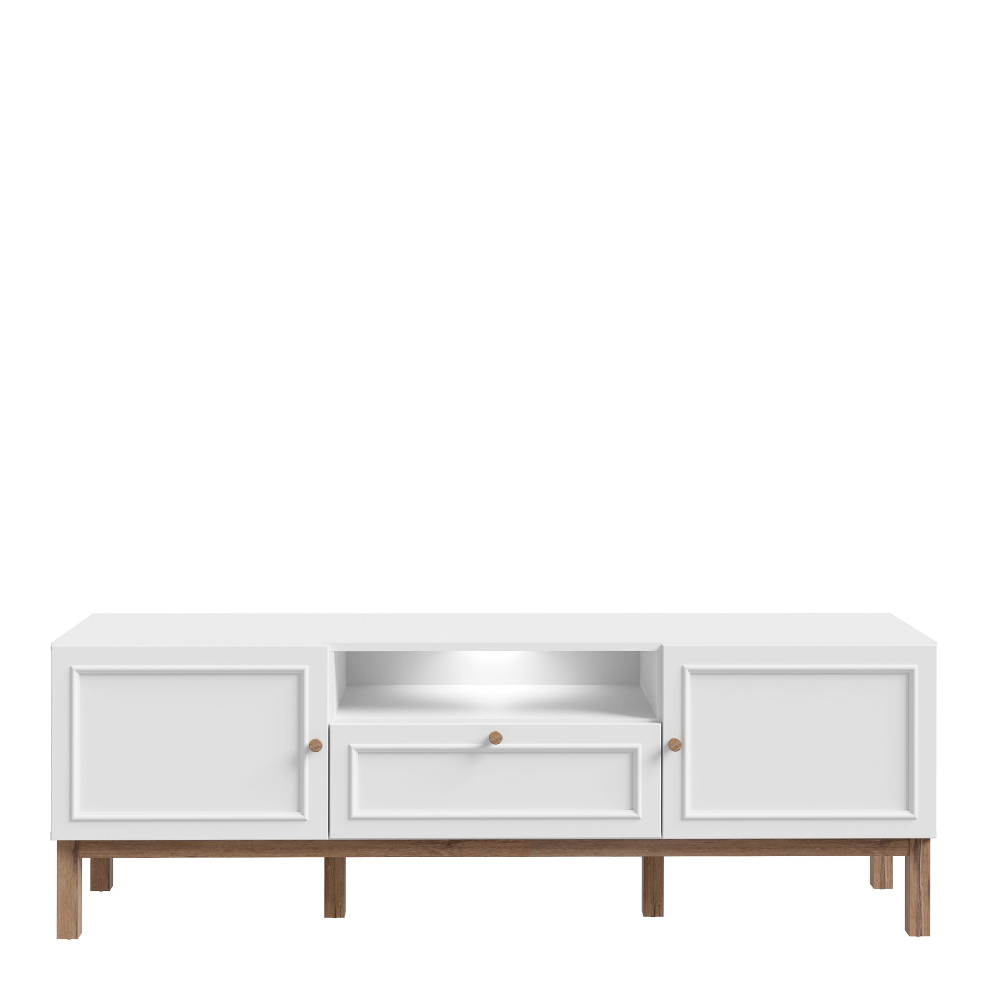 Wensley 2 Door 1 Drawer TV Unit in Light Grey and Oak inc LED Lighting